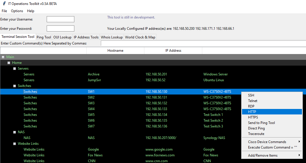 Overview: IT Operations Toolkit is an all-in-one tool designed to make the day-to-day tasks of IT operations staff more efficient and hassle-free. With IT Operations Toolkit, you can easily access and manage all of your network devices, servers, and applications from a single, streamlined interface. Whether you need to ping multiple devices at once, execute commands in bulk, or connect to multiple devices via SSH, Telnet, RDP, or Web Interface, IT Operations Toolkit has got you covered.